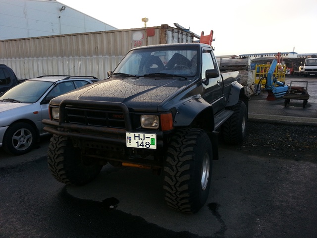 Góðann daginn, ég er með Toyota Hilux 1985 árg. Hann er "44 breyttur en er á "38, bíllinn var sprautaður fyrir 2-3 árum skilst mér. Engar læsingar og er á 4:88 hlutföll tel ég. Gormum framan og aftan 4-link að framan. keyrður rétt rúmlega 350 þús