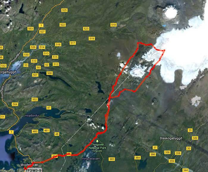 Klárlega er meiri snjór inná Kaldadal og við Skjaldbreið, svo er Langjökull ekki langt undan.