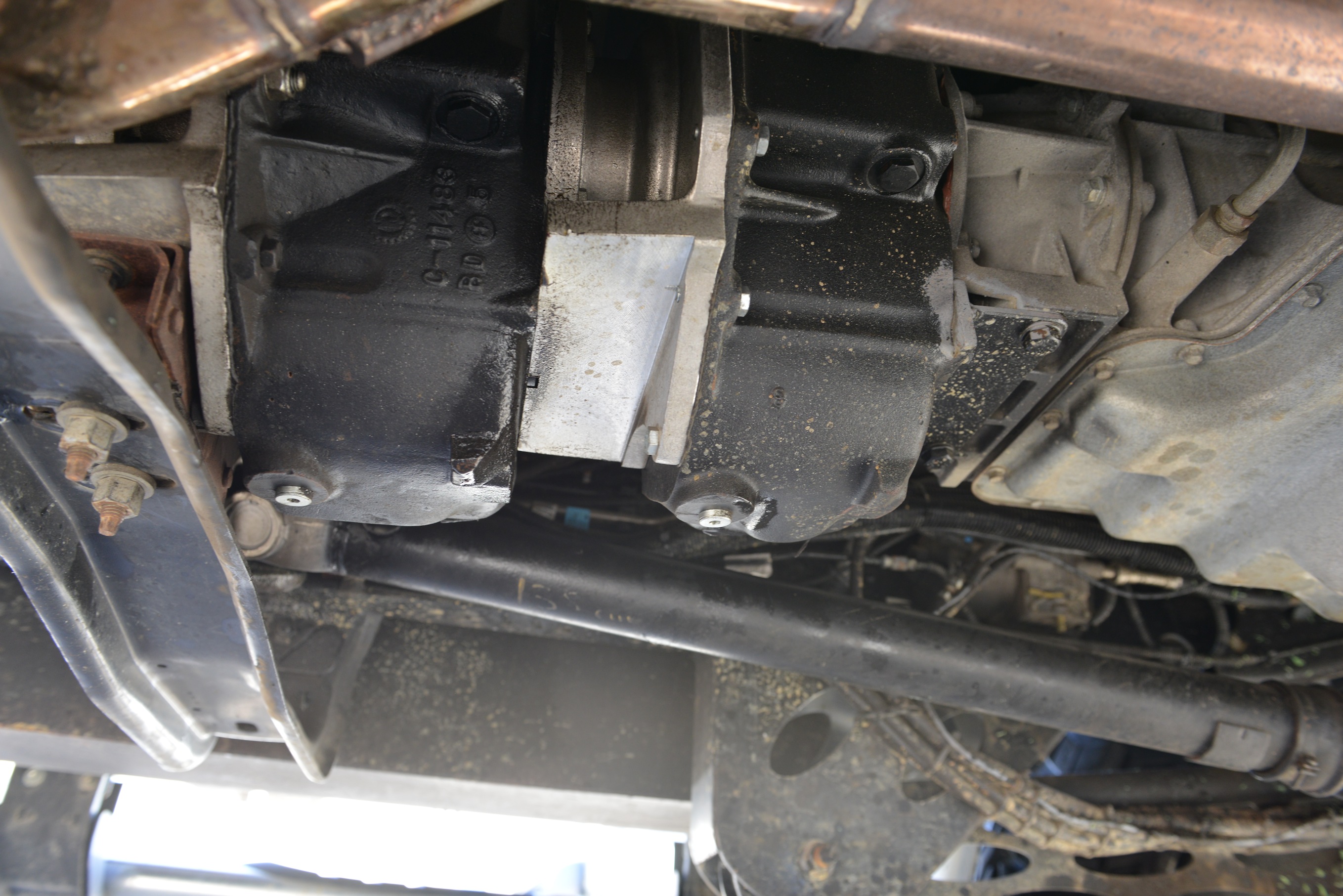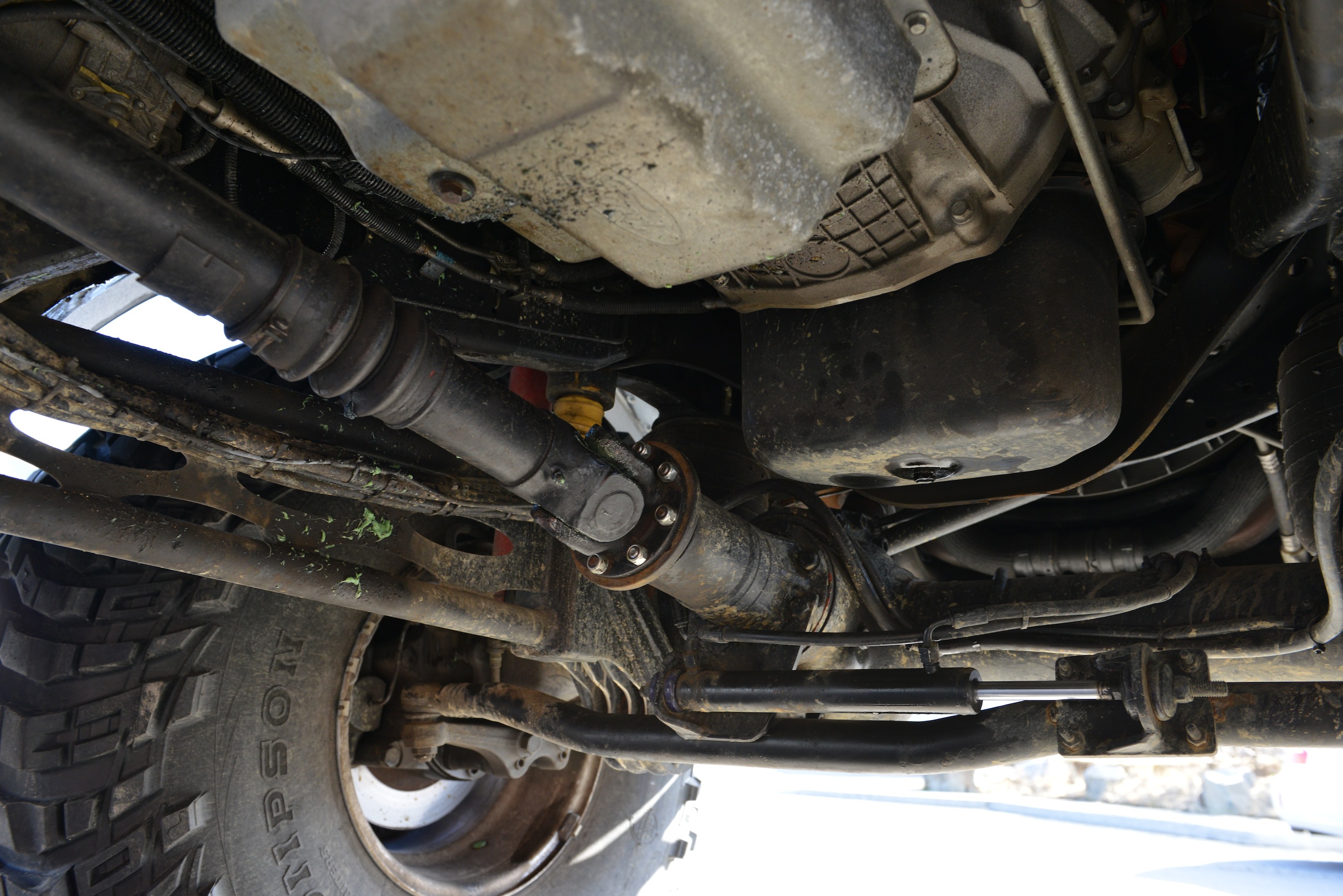 Svo eru drifsköftin og tvöföldu liðirnir í þeim miklu sverari en original. Benz vörubílasköft.