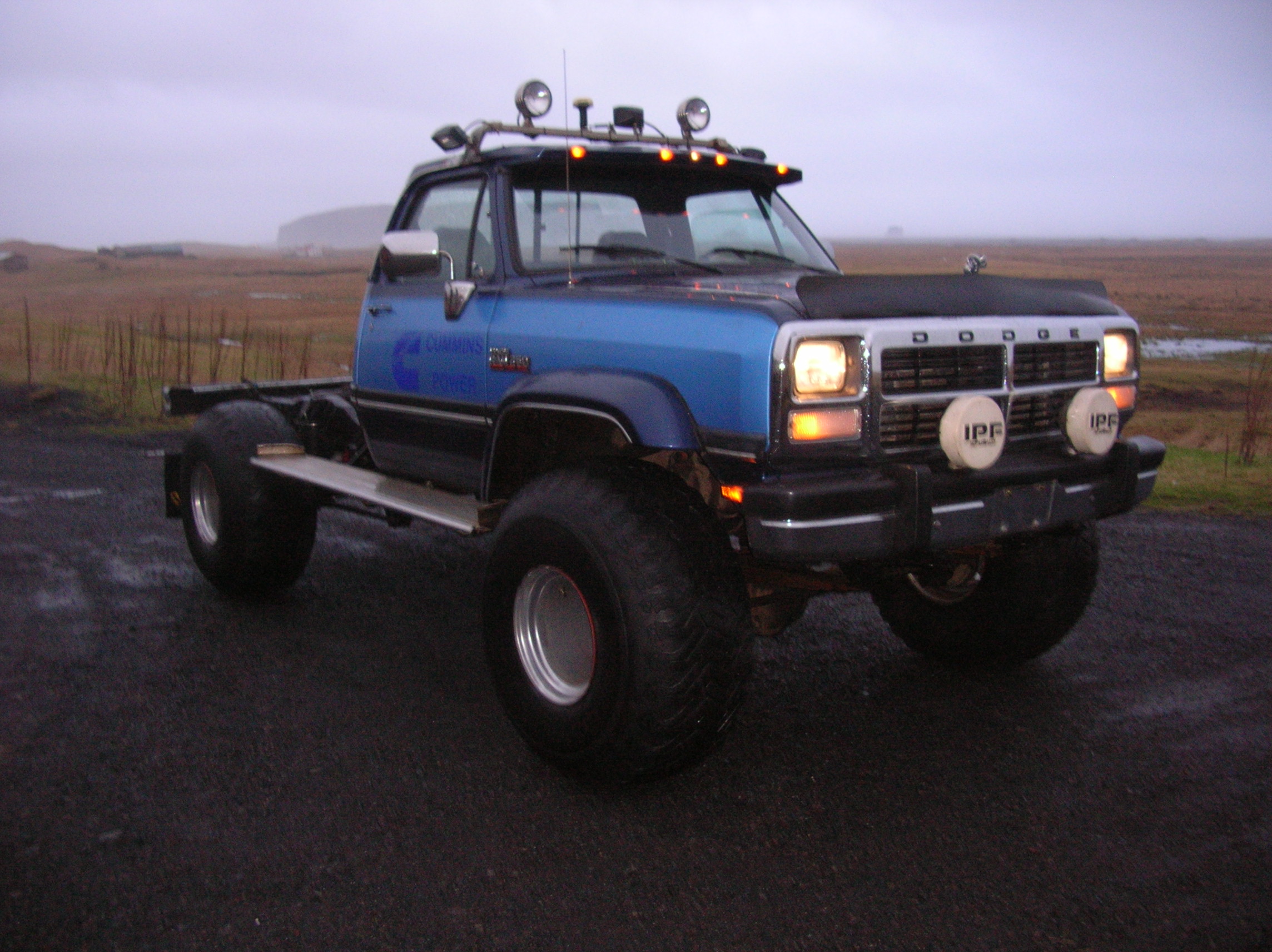 Sæll Gunnar hvað geri maður ekki fyrir félagana hér á spjallinu. Skellti mér á skeljarnar eins og ég væri að biðja mér eiginkonu og ætlaði að taka mynd en ekki dugði það til að koma hausnum undir hinn óbreitta Ram svo ég fór þá alla leið á húddið og synti bringusund undir óbreittan Raminn og hélt ofan í mér andanum því frekar mikil rigning er hér og blautt á götu og skellti mynd af draslinu.Það þurfti tvo fílhrausta menn til að draga mig undan bílnum, en þá var hundurinn búinn að toga ótæpilega í buxurnar mínar og voru þær komnar niður á miðja leggi. kveðja guðni á sigló