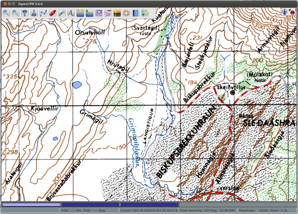 Fyrir mörgum árum gekk á milli manna kortagrunnur með skönnuðum kortum á NOS GEO sniði. Hvert kort er semsé tvö skjöl, annarsvegar myndin á raster sniði (xxx.NOS) og hinsvegar hnitaupplýsingar (xxx.GEO) sem er bara textaskjal. Þessi kort voru keyrð af forriti sem hét Navtrek og síðar Nobeltec að mig minnir. Þessi grunnur er vissulega barn síns tíma en sem betur fer hefur landið ekki breyst að ráði síðan hann varð til.