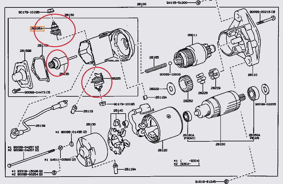 Jarðvír frá mótor í boddy, jarðvír á startaranum sjálfum frá startpung í belg, kolin í startaranum eða svissbotninn.