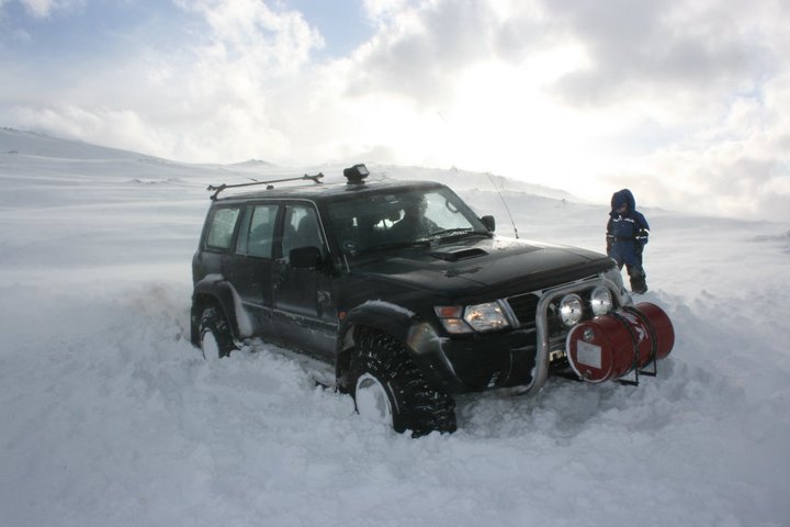 Jæja er endanlega búinn að ákveða að reyna að selja aftur eftir tilraun síðasta haust. Patrol 98 árg , beinskiptur, á góðum negldum 38" GH dekkjum og 14" breiðum felgum. ekinn 236.??? þ km. Loftpúðar að aftan sem pumpað er í aftan á bíl, Kominn púði annarsvegar að framan (er ekki kominn lengra :) ) Reimdrifin loftdæla og kútur með einstefnuloka og öryggisventli getur fylgt með. Xenon í kösturum , vinnuljós á toppi. orginal læsing að aftan en um síðustu helgi slitnuðu vacuum lagnir úr sambandi þarna afturí. plastkassi á afturhurð, tengi og loftnet fyrir VHF stöð.Túrbína ekin ca 27þ km. Fyrir 21þ km síðan að skipt var um sveifarás, og legur, smurdælan endurnýjuð í leiðinni. Ca 35þ km síðan skipt var um eina stimpilstöng og ca 45þ km síðan skipt var um hedd og allt í því. Eitthvað er jú að svona bíl. liður í ballansstöng að framan er ónýtur. Ég er ekki viss með spíssana en mér finnst vera tikk í þeim og þessvegna fylgja aðrir spíssar með sem eru eknir 20þ km. Þarf að skipta um millikassa en einhverra hluta vegna hefur öxullinn aftan úr honum skekkst örlítið og það er smá víbringur í honum, annar kassi fylgir með. 300 km síðan skipt var um olíu á vél, kössum og drifum. það Splunkunýr geymir í honum. Á svo til splunkunýja ARB læsingu í framdrifið sem er ennþá í kassanum sem getur selst með