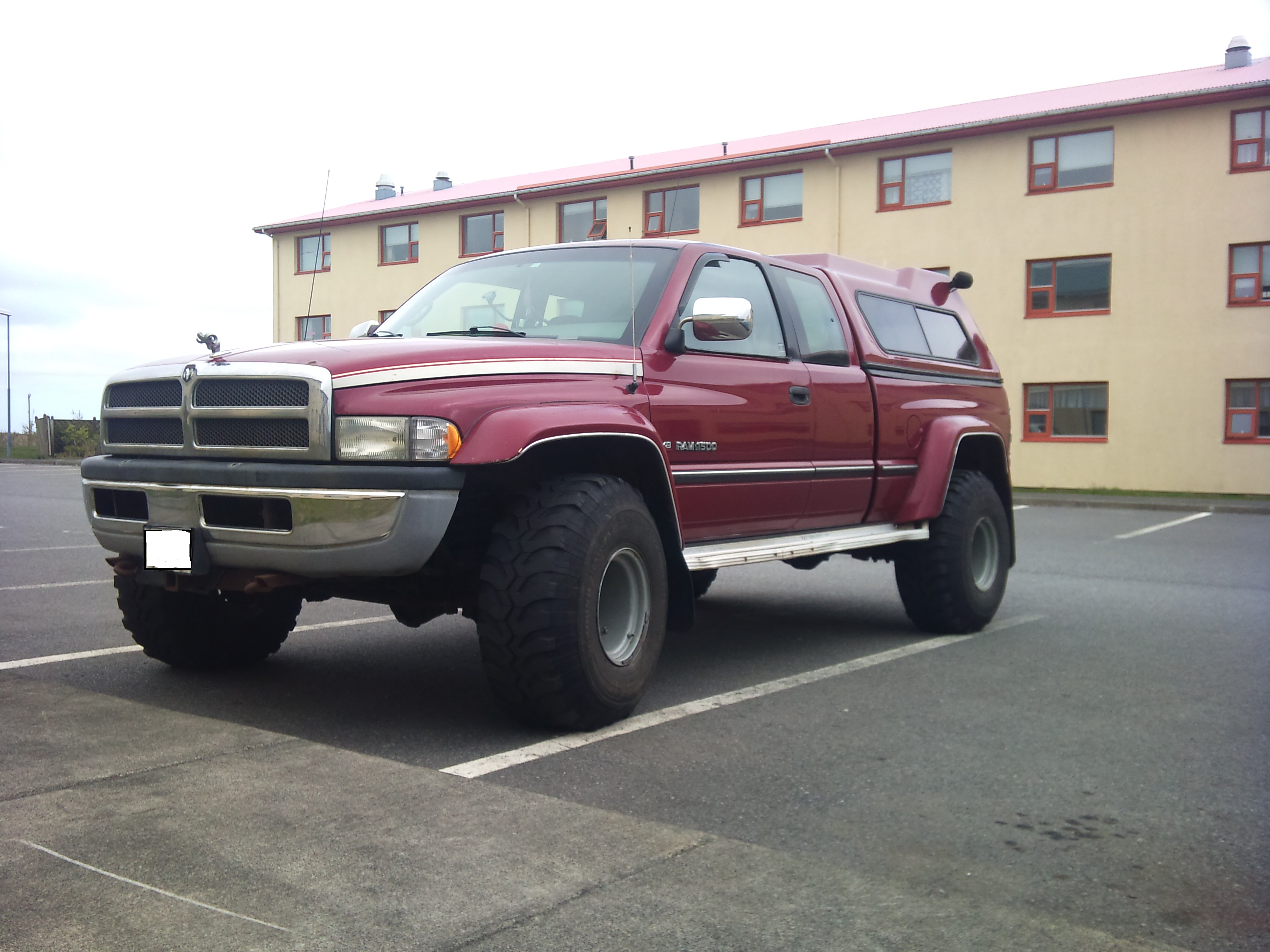 Er með Ram 1500 1996 með 5.9l 360c vél 38" breyttur á 38" og 15" breiðum felgum pallhús klæðning á palli ný skoðaður loftlæstur framan lækkuð hlutföll get sent myndir bara sendið á mig og ég svara gislirsum@hotmail.com