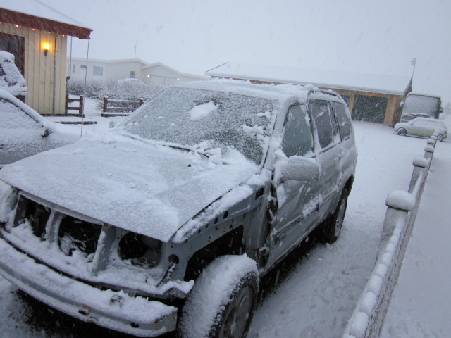 Stuðari er skemmdur, vantar vinstra framljós, vinstra frambretti og smá skemmd á bílstjórahurð