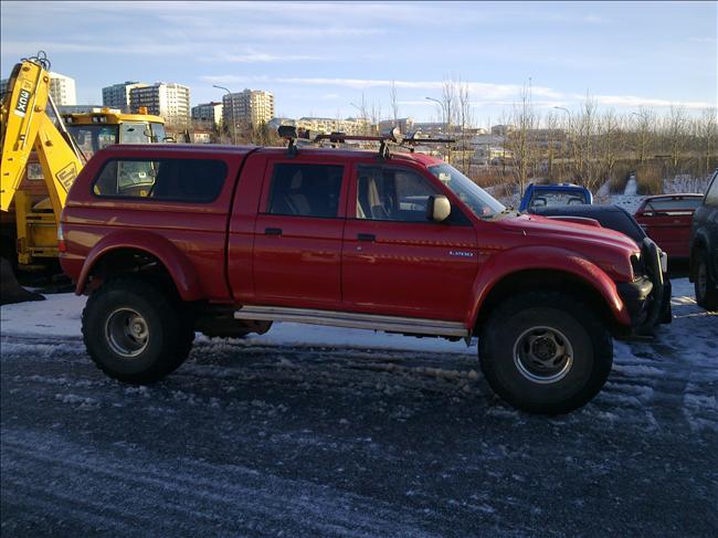 Er með þennan L200 til sölu. ALLUR NÝSPRAUTAÐUR (ekki vegna ryðs) Var ekki ryðdropi í honum, bara upplitaður. Skoðaður án athugasemda. Búnaður sem er í bílnum Reverse framdrif 3" púst aukarafkerfi 6 kastarar og 4 vinnuljós á hliðum og aftur. Prófíltengi framan og aftan Fini loftdæla VHF og CB talstöðvar Drullutjakkur Loftkútur. bostmælir Þakbogar Kastaragrind Forlink fjöðrun að aftan með gormum. Dráttarkrókur Flott GPS tæki ef um semst Röra afturstuðari. stigbretti Gluggahlífar 5:29,5 hlutföll Stýristjakkur Ný tímareim Ný smurður Ný vatnsdæla og pakkdósir framaná mótor´ Álfelgur 12,5" breiðar prime held ég 38" mudder (ekkert voðalega góð) Handvirkar lokur Dökkar rúður Læstur að aftan Pallhús Ný kúpling. Gamalt pall lok fylgir. og slatti af varahlutum. OFL...OFL...sem ég man ekki. Hér er líka bílasölulinkur með nokkrum myndum http://netbilar.is/CarDetails.aspx?bid= ... &schpage=1 VERÐTILBOÐ. 1,490,000kr Skoða flest skipti. Til dæmis á tvemur cross/endurohjólum Allar upplýsingar í síma 868-3512, isakfannar@gmail.com