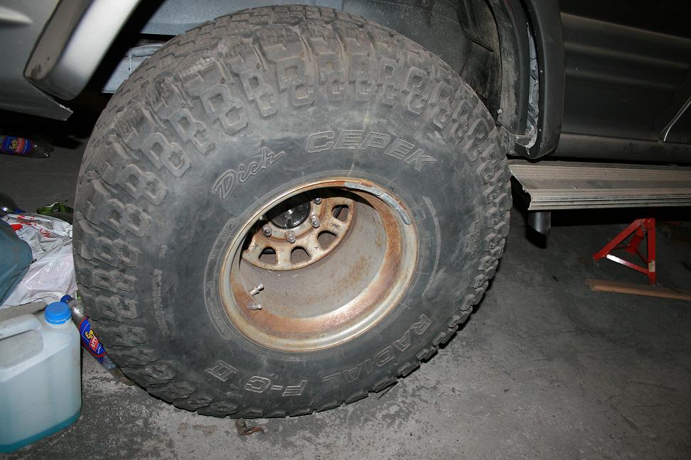 Sælir, ég er með góðan 38" gang af DC radial, dekkin eru microskorin, ófúin, nokkuð jafnt slitin og með 11-12mm eftir af munstri, dekkin eru á15" háum, 14" breiðum 6gata felgum með 2ventla, backspace er ca. 9cm,