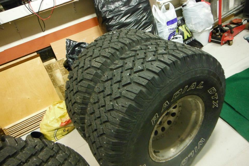 Er með 35x12.5x15 dekk til sölu. Nelgd og lítið notuð. 13mm munnstur. Eru á álfelgum sex gata toyota. 100mm inn að miðju.