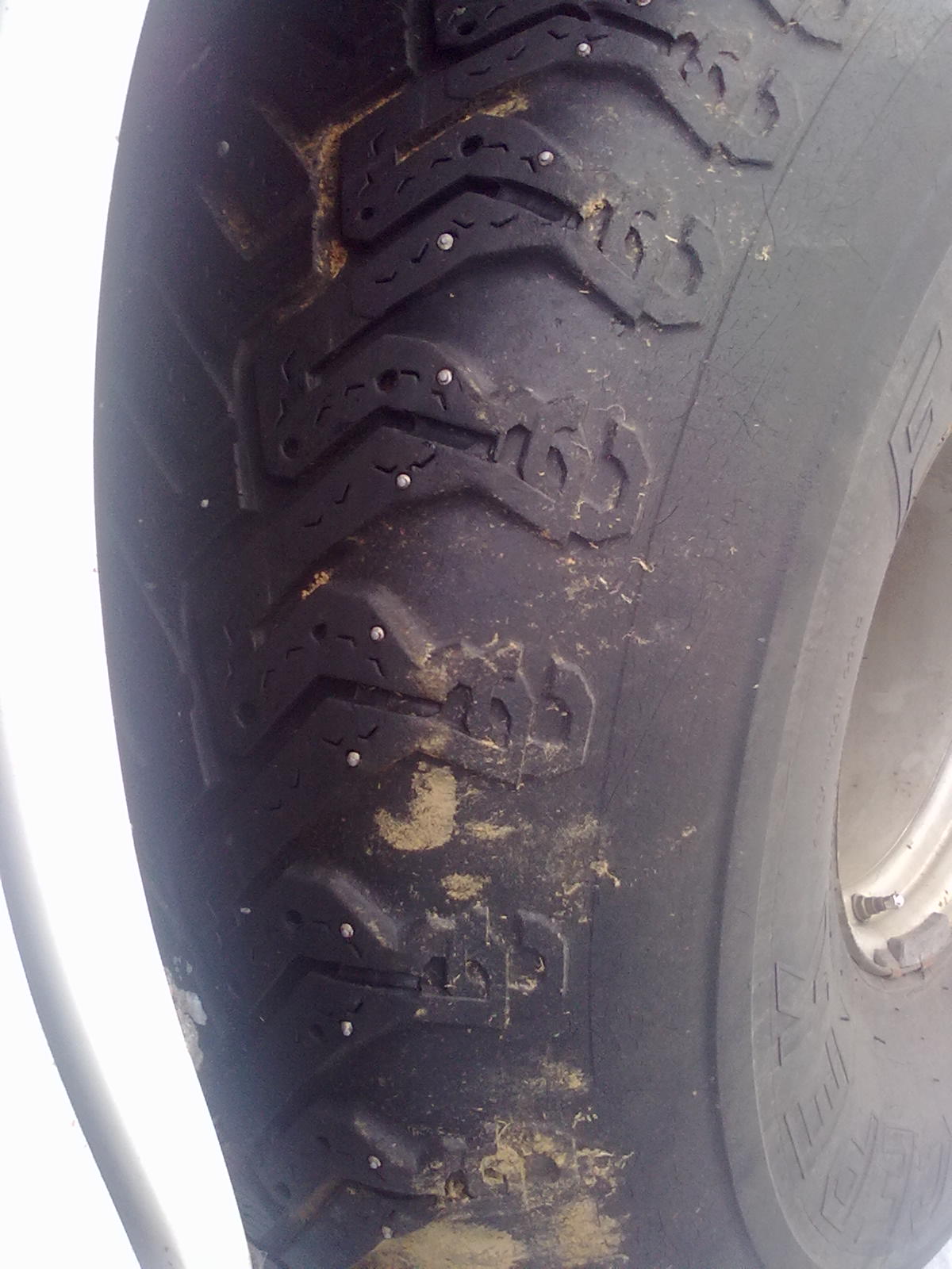 Er með ca hálfslitin 44"dc fyri 15" felgu nelgd og skorin og 14" breyðar 6 gata felgur með ef menn vilja.