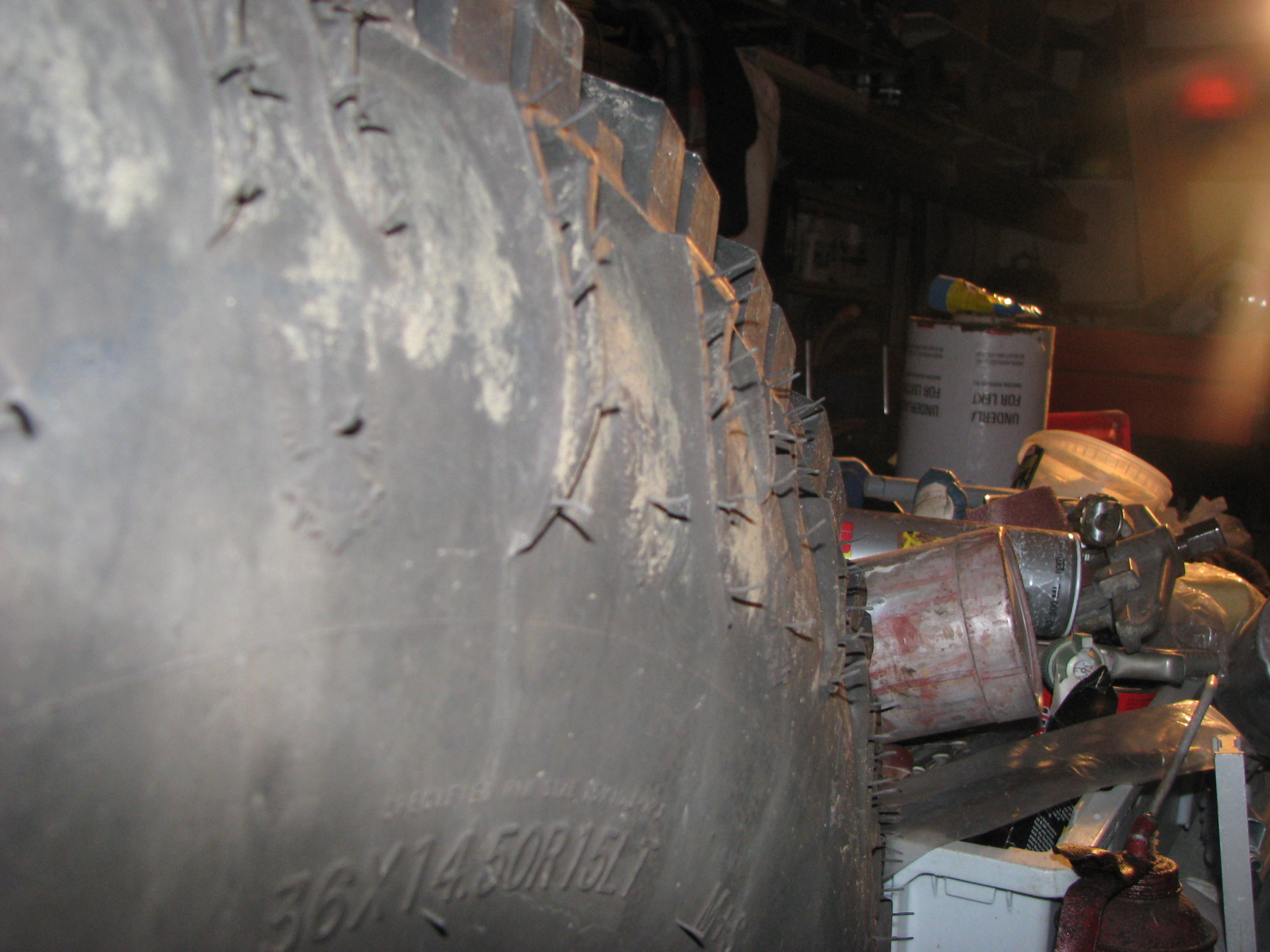 svo minni ég auðvitað á 36" trexus gang á 15"x12.5" breiðum felgum...Nánast ekkert eydd munstrið er 10mm öll dekk jöfn..ótöppuð og ófúin og ekkert farin að morkna flott dekk vil fá 150.000 fyrir ganginn á felgum