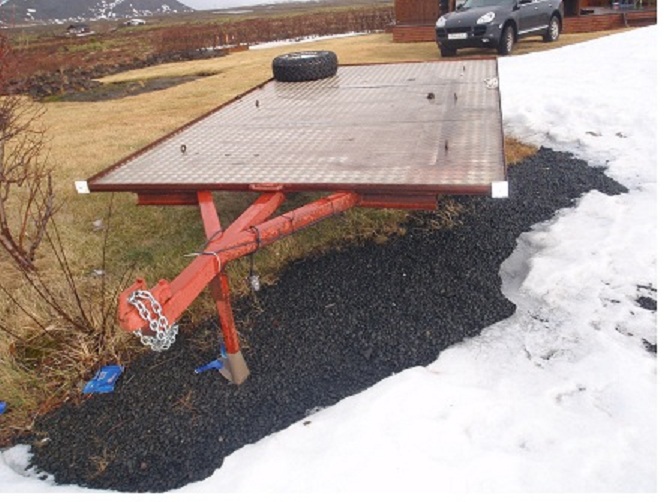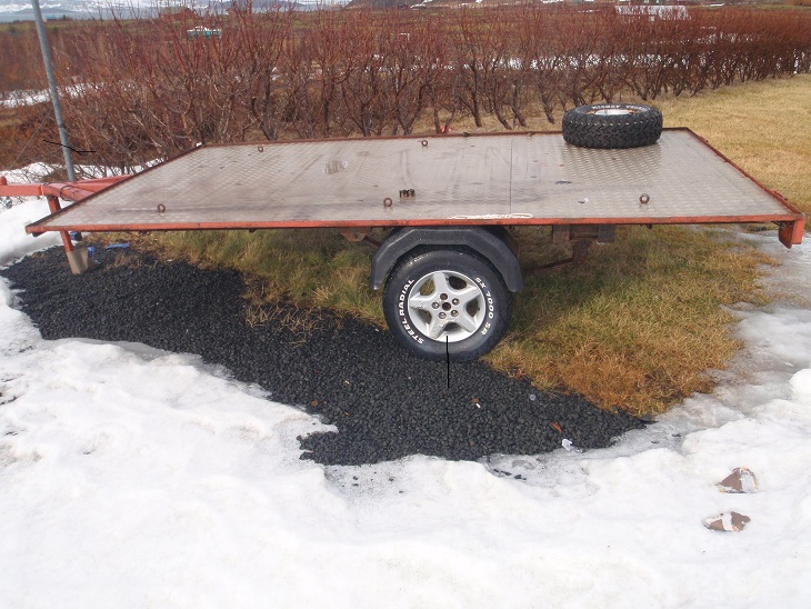 Gamla skráningin þýðir að hún sé með ljósum en er ekki skyldug að hafa bremsubúnað. Kerran má bera eins mikið og hún þolir.