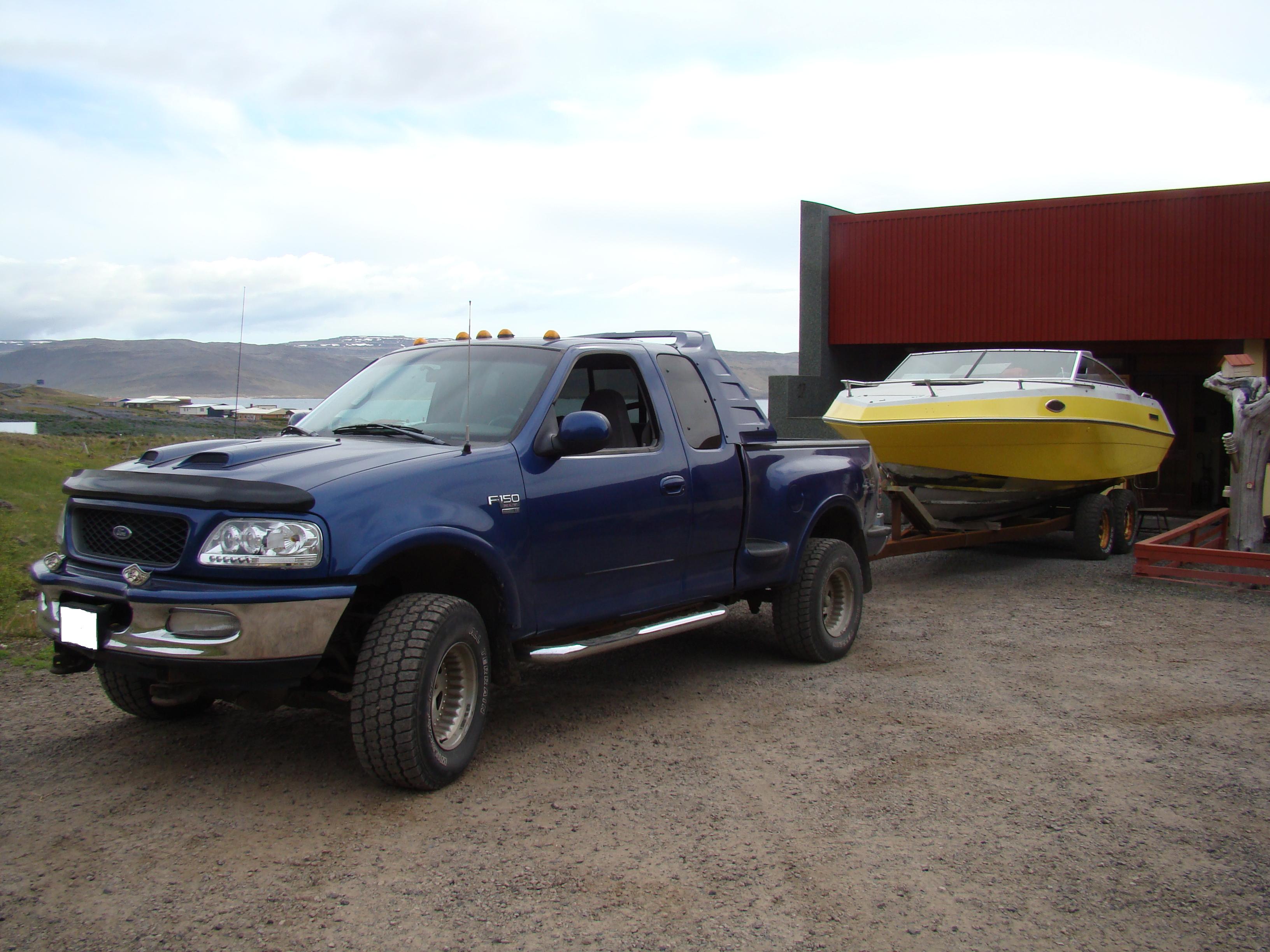 Til sölu Ford f150 4.6 árg 1999 á 33" dekkjum, ekinn 119þ mílur , ný kerti, nýr loftflæðiskynjari og nýir skynjarar í pústi. Báturinn er Sundowner fourwinns 20,5 fet með 4.3l chevy mótor. nýlega skipt um gólf, ný sjálfvirk lensidæla (800 gph),önnur eins dæla er aftan á gafli og notast sem smúldæla ef skola þarf bátinn að innan t.d. eftir stangveiði eða skotveiði ,nýlega uppgert OMC drif, tvær skrúfur, önnur er stillanleg Propulse skrúfa. nýr barki í gír. Árgerðin er ekki alveg á hreinu, ca 84-90 árg miðað við myndir sem ég hef skoðað