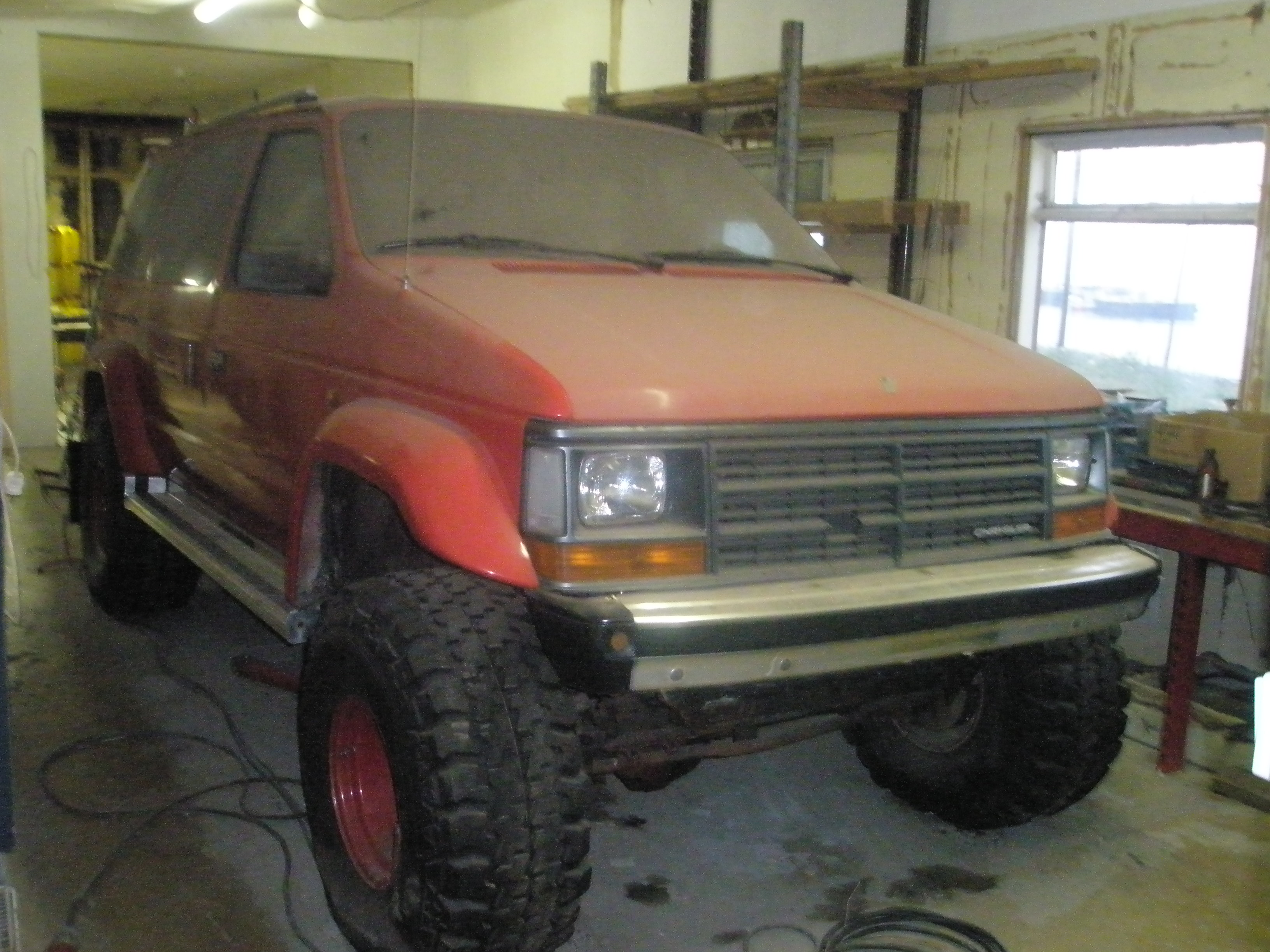 Skoðaði þennan bláa Rocky fyrir nokkrum árum og leist vel á hann við fyrstu sýn en undir ágætis lakki var boddýið orðið mjög lélegt. Það voru sprungur í gluggapóstum, ryð á öllum "vondu stöðunum" (inní, bakvið, undir o.s.frv.....) og boddýið örugglega sprungið við boddýpúðana því það brakaði mikið í því. Svo var hann alveg hrikalega máttlaus, hann var lakari en 2,4 turbo hilux. Síðan voru nokkur atriði sem mér leist ekki á í sambandi við breytinguna en það eina sem ég man er að stífuturnarnir að framan þar sem radíusarmarnir koma í grindina voru bara eitt stk. flatjárn í þykkari kanntinum sem skagaði niður úr grindinni.