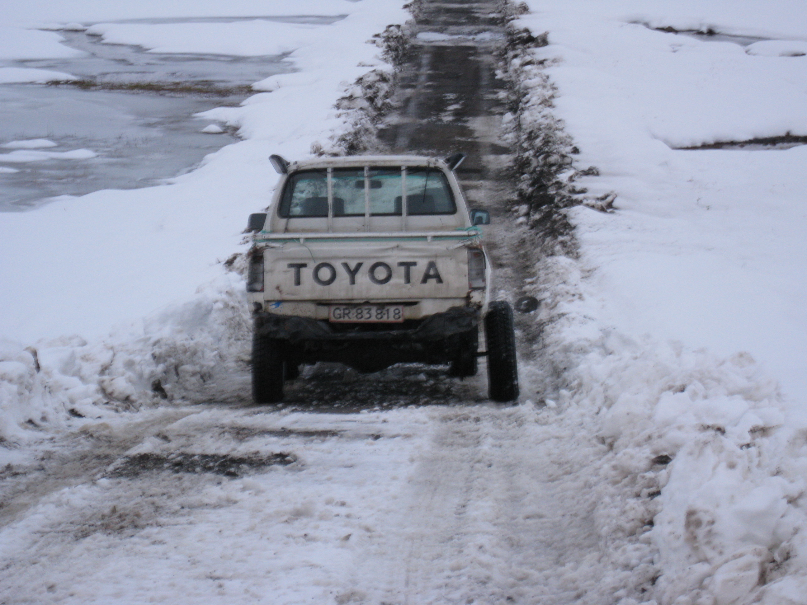 Já það er fyndið að sjá Rocky með öxulinn út. En þessa mynd tók ég fyrir Hilux aðdáendur á ferð minni um grænland um árið. Þessi var nú bara að bakka og þá gerðist þetta....