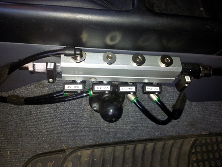 svona var þetta í bílnum, fyrir púðana svo bæti ég bara við 5 svona tökkum við sem ég toga upp til að opna, 4 til að opna inná dekkin og 1 lyfti upp til að opna inná lokann sem hleipir úr eða í og svo ef ég ýti niður þá er hann tengdur við mælinn. þá get ég opnað inná hvert dekk fyrir sig til á sjá þrýstinginn í hverju dekki fyrir sig