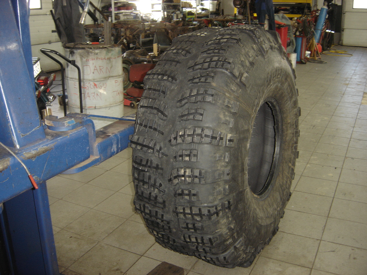 Jæja félagar alltaf verið að brasa. Er kominn með 54" dekkin heim vel slitin. Þau eru eins og fyrverandi ófrísk kona eftir erfiðan sauðburð og er ég byrjaður að skera. Dekkið vigtaði 75kg eftir skurðaðgerð, sem er hálfur ég, en 80 fyrir aðgerð 5 kg af gúmmí farinn. Erum að sjóða í grindina og loka henni í leiðinni eftir að hafa opnað hana á köflum til að hreinsa út úr henni ryð og drullu sem nóg var af eða þrjár fullar álskóflur af stærstu gerð. Snilli er að klippa niður í og hanna stífufestingar á afturhásinguna. Ég vigtaði Unimog felguna óbreikkaða og er hún 22kg. Breikkun verður um 9" og er þá felgan orðin 18" breið með backspeis upp á 23cm og 8 gata deilingu og 25 kg sirka ætla að nota 2,5 mm í þykkt á breikkun.Það kom í ljós að ég get notað 54" dekkið sem sundhring því innan málið er um 160cm sem er alveg passlegt um mittið á mér og þar sem ekki er til sundskýla á mig leysti ég tvö vandamál í einu. Nú liggur ÍRANINN (frjósemis stöngin) inn í dekkinu og nú er ég á leiðinni í sund í fyrsta skipti. Jú það er dótadagur á miðvikudögum í sundhöllinni hér og þá má maður koma með sinn eiginn kút eða björgunarhring.Meira seinna Snilli og Tilli (Íraninn)5,4"