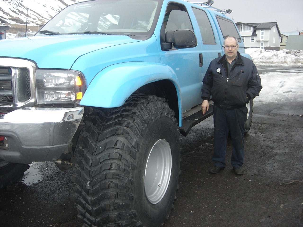 Sælir strákar. Við vorum 5 vinnustundir að setja dekkin á felgurnar og taka 49" undan og setja 54" undir. Þannig að á dekkaverkstæði með öllum græjum og dóti ætti þetta að taka svona þrjá tíma og kosta svona um 10.000 krónur finnst mér. Þetta er ekki eins mikið mál að gera þetta og ég var búinn að frétta og fínt fyrir öryrkja og aumingja eins og mig að dunda sér við þetta til að eyða deginum. Menn eru örugglega mikið fljótari að þessu í Reykjavík enda er ég orðin slappur til átaka og frekar latur. En hrúturinn reddaði þessu. þetta eru Unimog felgur að hluta eða 20"hringur og búið að smíða aðrar miðjur. Úrhleypibúnaður í nöfum og loftmælar sem Jörgen flytur inn og eru tveir gluggar í hverjum mæli. Þetta eru 50 mm mælar eða þessir hefðbundnu. Set inn meiri myndir síðar. Farið var í brekkuklifur á dag á skriðgírum og það er alveg ótrúlegt hvað þessi dekk eru gripmikil og sama verð ég að segja um 46". hún er ekki síðri í þessu blotafæri á góðum skriðgír. Þetta munstur er að þrælvirka í blautum snjó og mikklum brekkum. kveðja guðni
