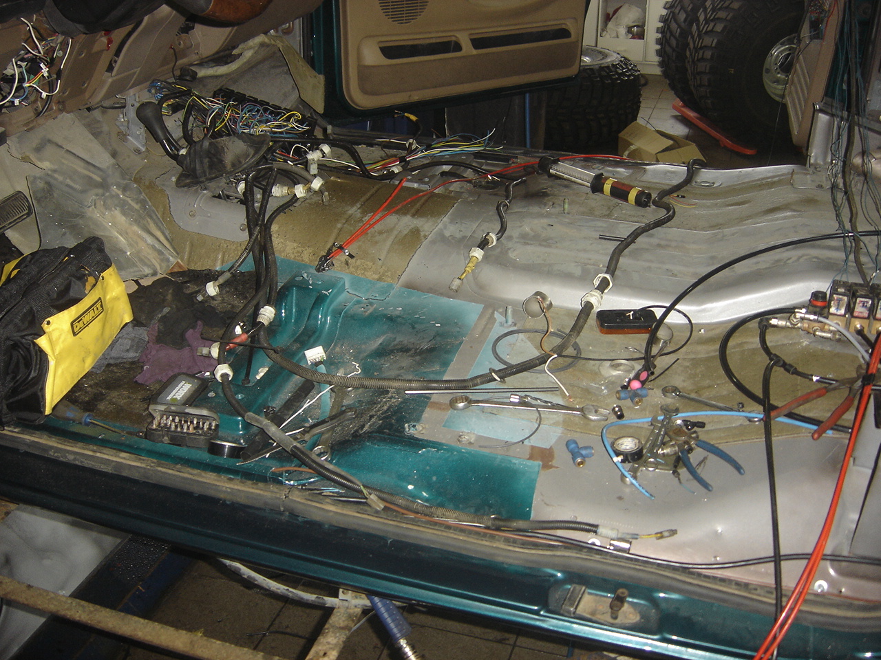 Sælir félagar smá fréttir að norðan. Nú er 6x6 Raminn í lítilsháttar viðhaldi. Keypt var boddý af 1999 bíl disel með opnanlegum aftari hurðunum og leður innréttingu og verður mikill munur á að ganga um þetta boddý en það gamla sem var af V-10 bensínbíl. Mikið betri hljóðeinangrun er í diselhúsinu og flottari innrétting. Boddýið var sent á Múlatind þar sem það var allt tekið í gegn ryðbætt og sprautað og er þar flott vinna í gangi að venju hjá honum Steina. Svo er verið að leggja lokahönd á nýjan pall úr stáli með skjólborðum úr áli. Settir voru aðrir spýssar í vélina en áður var kominn önnur túrbína olíuverk og fleira afl aukandi nammi sem ég kann ekki að nefna ( wri- ger- sbk -egr3-SÍBS- abt-4 wwc- go -and/ hárþurka) þeira skylja þetta Hr. Cumings og Lecter. Nú svo voru smíðaðar nýjar felgur og var það gert í skúrnum og hannaður suðu robot úr hinum og þessum pörtum til að sjóða þetta saman og var skemmtileg vinna. Svo var fjárfest í nýrri 46" og þetta sett saman. Glussakerfið var endurbætt og settur stæri tankur fyrir glussaspilið og loftdæluna sem er glussadrifin og loftdælan höfð undir húsinu. Gamla húsið og gamla skúffan er til sölu ef menn vantar boddý og er það óryðgað sjá myndir. kveðja guðni