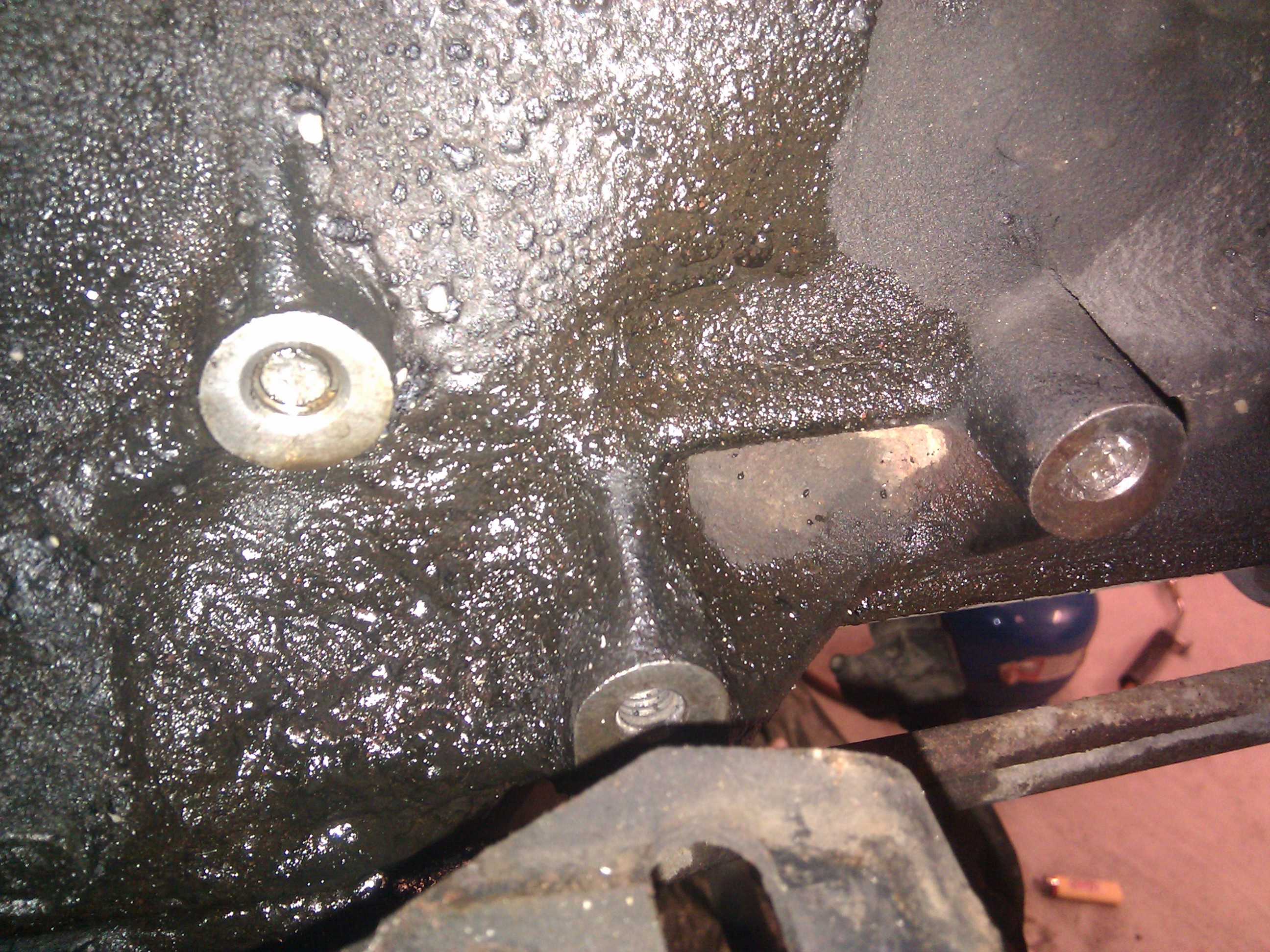 Ég braut tvo bolta sem halda mótorfestingunni við blokkina og þarf að bora út boltana og aðgengið er ekki gott. Ég er með vinkildrif en næ ekki að beita því nógu vel þar sem þessir boltar eru harðari en andskotinn ...