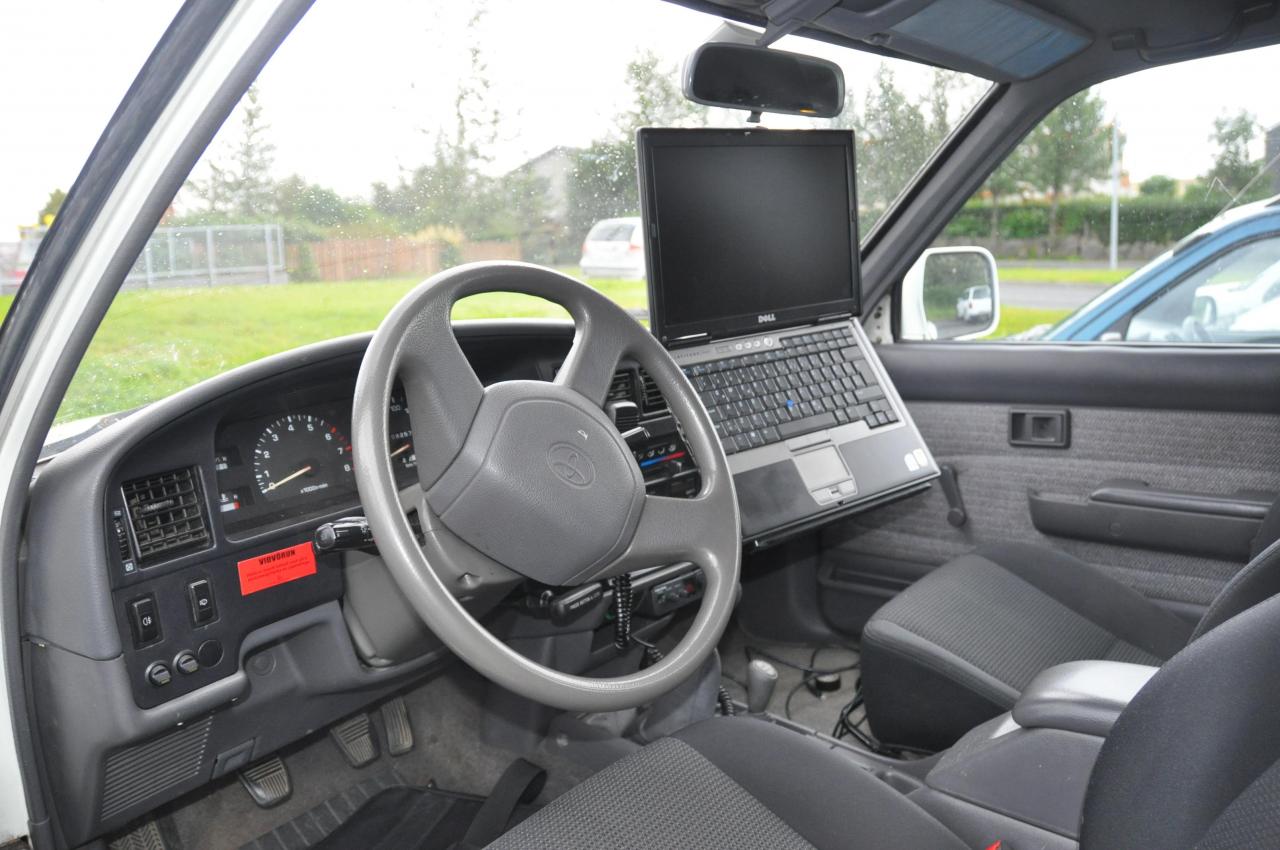 Jæja, nú gerðist það loksins að ég fékk mér jeppa aftur eftir margra ára pásu. Fyrir valinu varð 20 ára gamall hilux DC með 2,4 EFI bensínhák (að ég taldi). Billinn er allur hinn snyrtilegasti og er 35" breyttur og þannig plana ég að nota hann. Er aðeins búinn að dúlla í honum en á dagskránni er að tengja kastarana almennilega (var skítmixað þegar ég keypti bílinn), skella í hann cb stöð, smíða tölvuborð og fleira gotterí. Hef nokkra reynslu af þessum bílum og vissi svo sem hvað ég var að fara útí, hef átt 2 dc með 2,4 EFI áður og einn með diesel vélinni og ég verð að segja að 2,4 EFI er mun skemmtilegri þegar kemur að almennri notkun en diesel vélin er betri í snjó.
