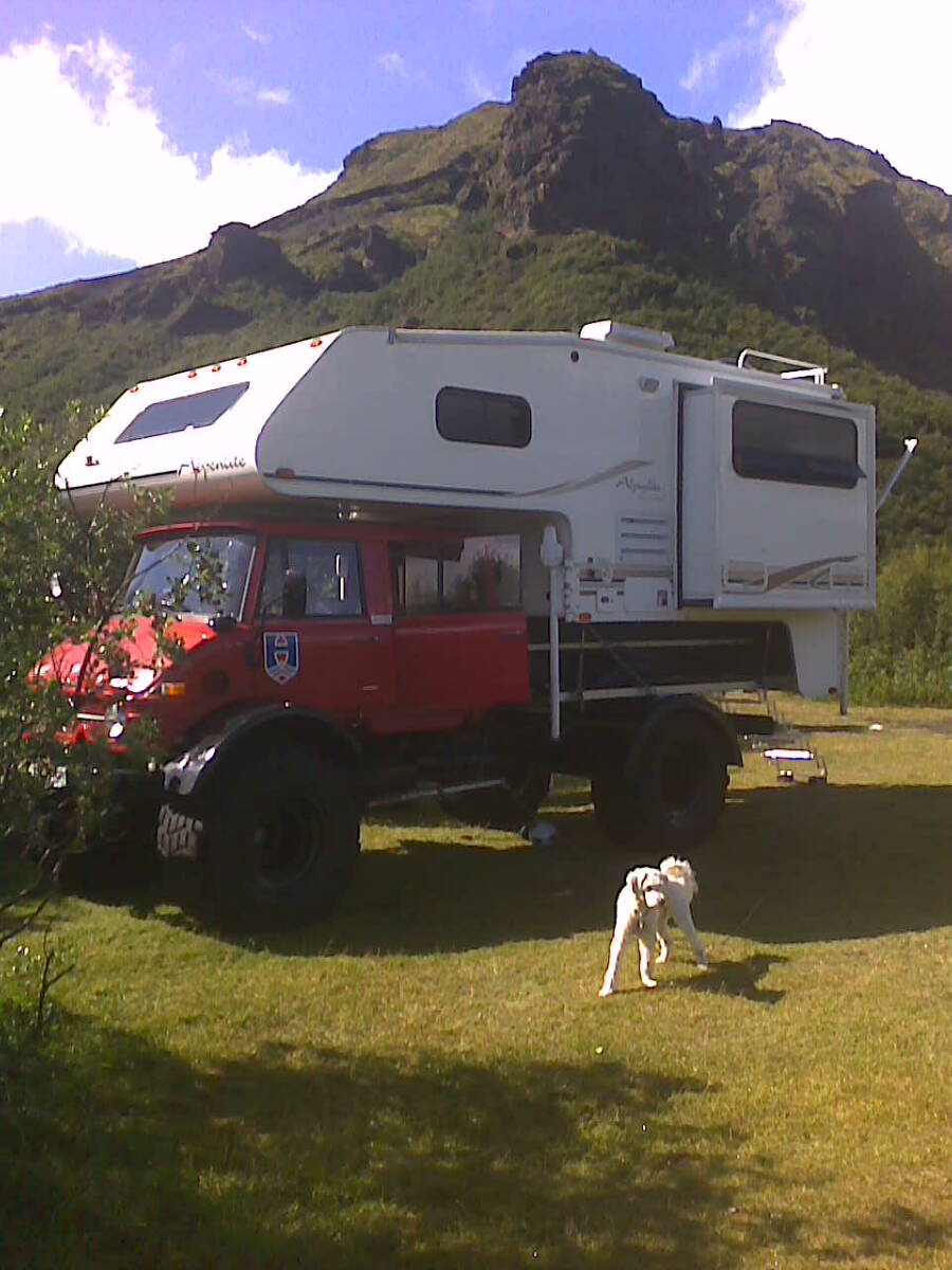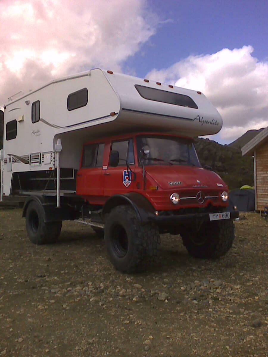 Eyðslan á bílnum er um 18 lítrar, hef ekki enn vigtað hann, ég gæti trúað að hann væri um 5 tonn með camper. Ég setti bílinn í geymslu í vetur, hann hefur alltaf verið geymdur inni frá upphafi svo maður fer nú ekki að láta hann ryðga niður þó maður vilji og langi að leika sér í snjónum. Annars er ég mjög ánægður með bílinn og hann hefur komið vel út. Það þarf að gera smávægilegar breytingar á afturfjöðrun því hann vaggar full mikið og er full hastur á þvottabrettunum.