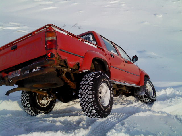 - Svona var hann þegar hann kom úr skúrnum á "mátunardekkjunum" en þetta eru 41,5" pittBull en planið er að setja 44" DC í vetur