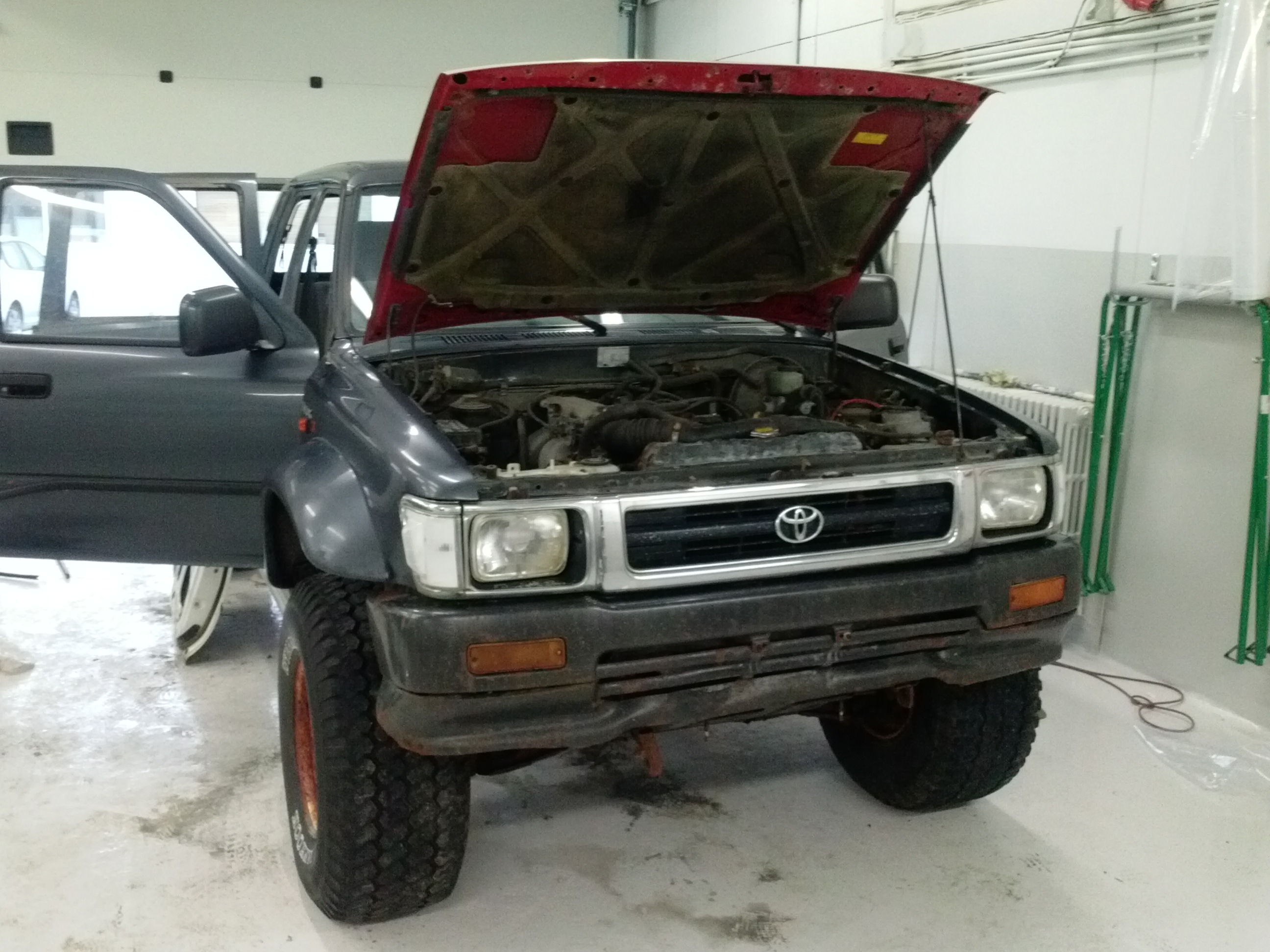 Er að byrja á uppgerð á þessum Hilux. Er 92 DC með 2.4 efi með lengingu á grind.