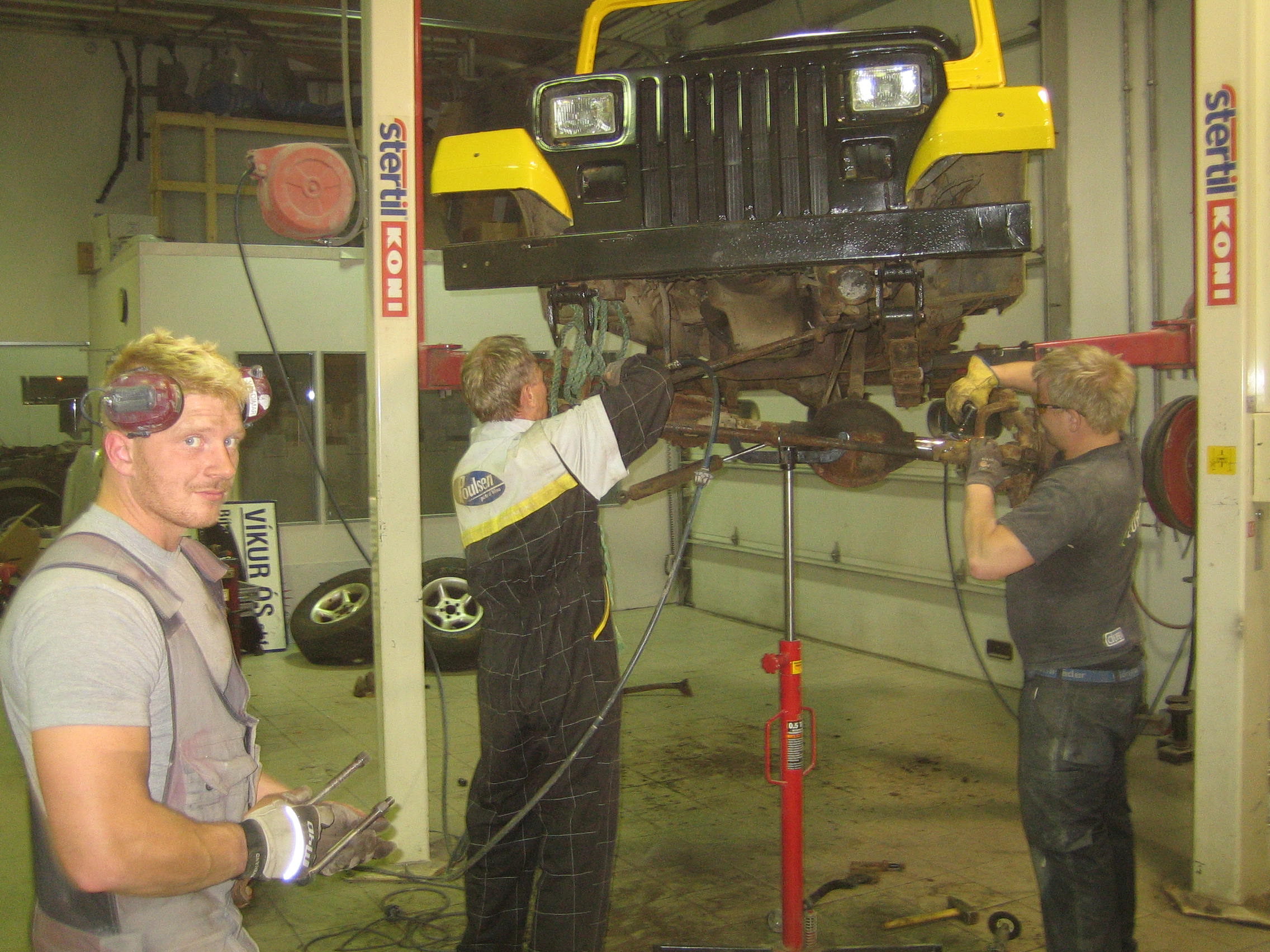 Sælir, hérna er vetrarverkefnið hjá mér og tengdapabba, búnir að vera að dunda í þessum síðan í september, fórum svosem styðstu leið í breitingum,færðum bara hásingarnar undir fjaðrirnar, orginal hásingar, 4L HO vél, 5 gíra kassi, fjaðrir framan og aftan. En boddyið var tekið alveg í gegn og er bíllinn farinn að taka á sig mynd.