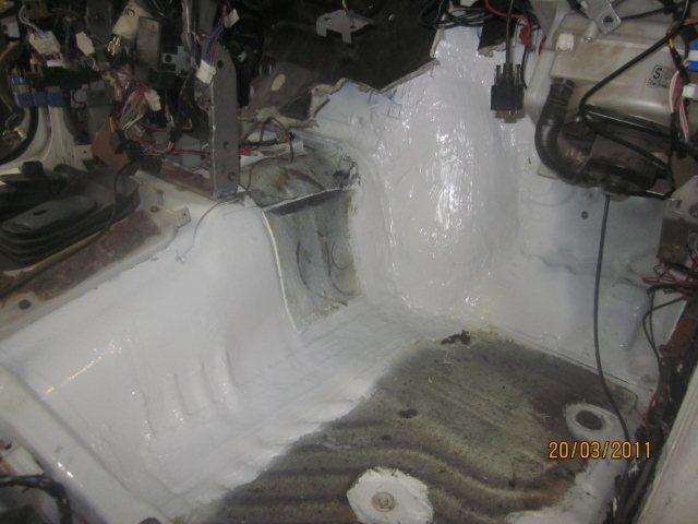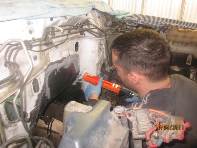 Hér er verið að setja hitaeinangrun á þar sem að túrbína og púst mun liggja