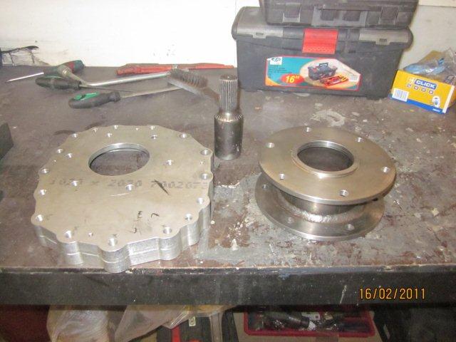 Hér er milliplata og múffa til að tengja saman patrol millikassa og 4l80e