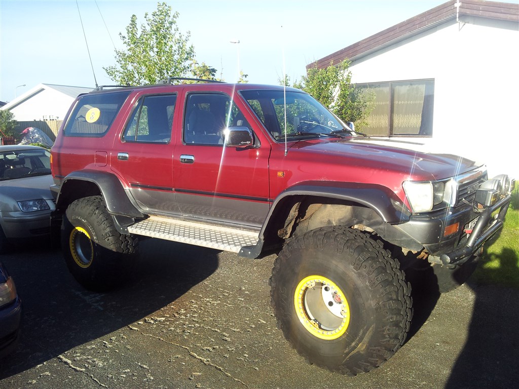 Til sölu gríðarlega flottur 4 RUNNER 1991 gjörsamlega riðlaus í flottu formi.Ný búið að skifta um hedd og pakkningar.2 tankar,hásingar framan og aftan hlutföll og loft læsingar framan og aftan milligír með ástralíu hlutfalli vél 4.3 Vortec mok vinnur og létt á bensínið ný iritium kerti þræðir lok og margt fl.Breyttur fyrir 44 er á nýjum 39.5 irok nelgdum og micro skornum á bandlock felgum.Öll tenfi fyrir gps vhf og fl.Verð 950þ getur líka fengist á 44 bara samkomulag.Er örugglega að gleima eitthverju... Já 4 kastarar 2 loftdælur.