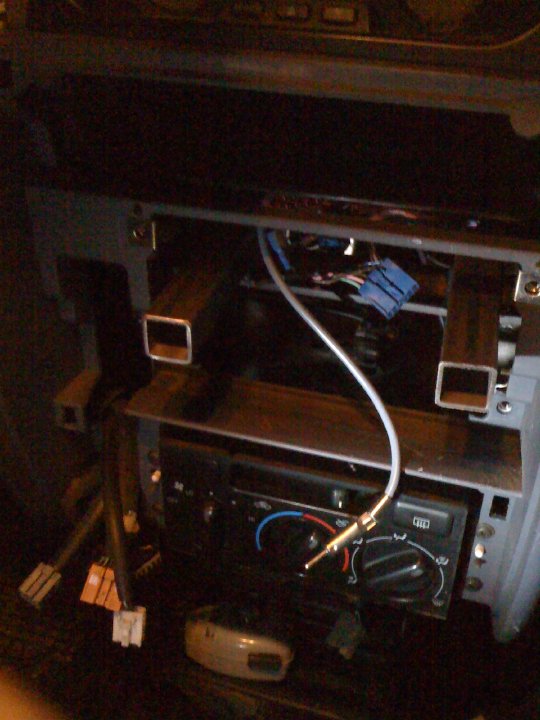 og smellti henni c.a hérna inn, utanum festingarbracketið fyrir útvarpið, boltaði hana bara í.
