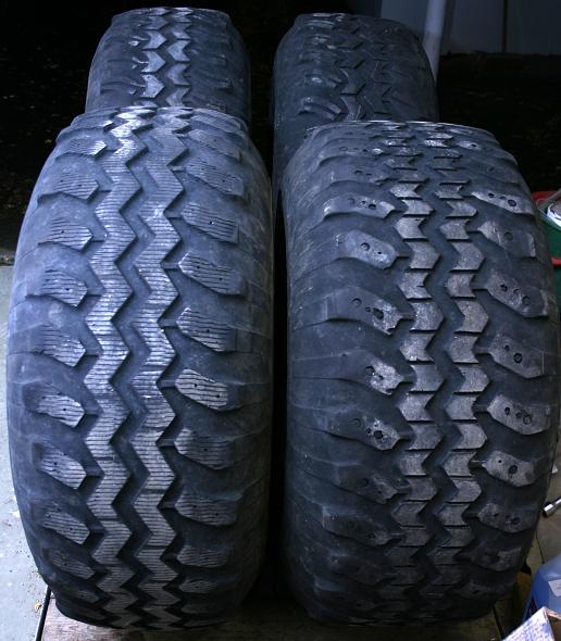 Ætli myndirnar tali ekki sínu máli með ástand á munstri en besta dekkið er með ca 10mm munstur í miðju. Veit ekki sögu þessara dekkja utan að þau voru undan 4Runner síðast, minnir að það hafi verið hásing á honum enda 44" breyttur. Hef sjálfur aldrei notað þau, ætlaði að nota þetta sem keyrsludekk en endaði með að fá mér nýleg dekk.