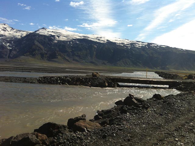 Fór upp í Emstrur síðastliðinn fimmtudag og þá var ekki búið að flæða yfir veginn. Gat keyrt yfir brúnna yfir Gilsá og vegurinn alveg þurr.