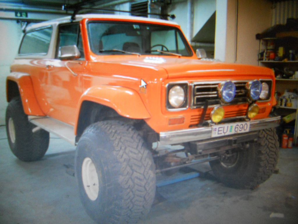 á þennan fína scout sem ég er búin að eiga í bráðum 10 ár en lítið notað. var soldið á honum þegar ég fékk bílpróf en síðustu ár hefur hann meira og minna bara staðið hjá mér en ætla núna að gera hann rólfæran. þegar ég fékk hann var nýbúið að smíða allt gólfið í honum upp og skera úr og seta brettakannta á hann og sitthvað fleira. svo sprautaði ég hann rétt áður en ég fékk prófið en það þarf að gera það aftur komið soldið af riðbólum hér og þar. í honum er orginal nissan 3,3 diesel túrbínu laus en ég ætla að seta túrbínu með tíð og tíma er núna að seta patrolhásingar undir hann og skifta fjöðronum út fyrir gorma allan hringin er búin að framan og er allt annað að keira hann. svo er stefnan að seta hann á skrá í vor
