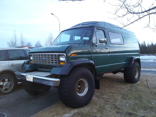 Til sölu Econoline árgerð 88 og skráður sem fornbíll. dana 44reverse að framan og gormar og GM14 bolta að aftan. 351 EFI rafstýrð og mjög gangviss og eyðslugrönn. Overdrive skipting. Low gear. Bíllinn er á mjög góðum 44 tomm DC.