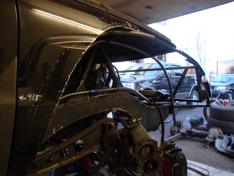 Til að reyna að halda bílnum lágum þá var grindin að framan hækkuð um ca 150mm og framhásingin færð fram um ca 450mm, með þessu fer hásingar rörið nánast upp að damper á mótor í samslagi. Í bílnum verður coil-over fjöðrun með 400mm slagi að framan og 450mm að aftan.