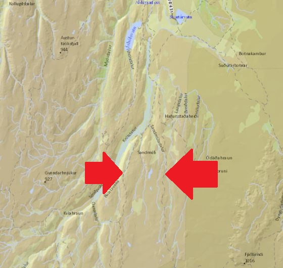 Það er milli Báðardal og Gæsavatnaleið nyrðri og ég er á óbreytt Nissan Terrano II.