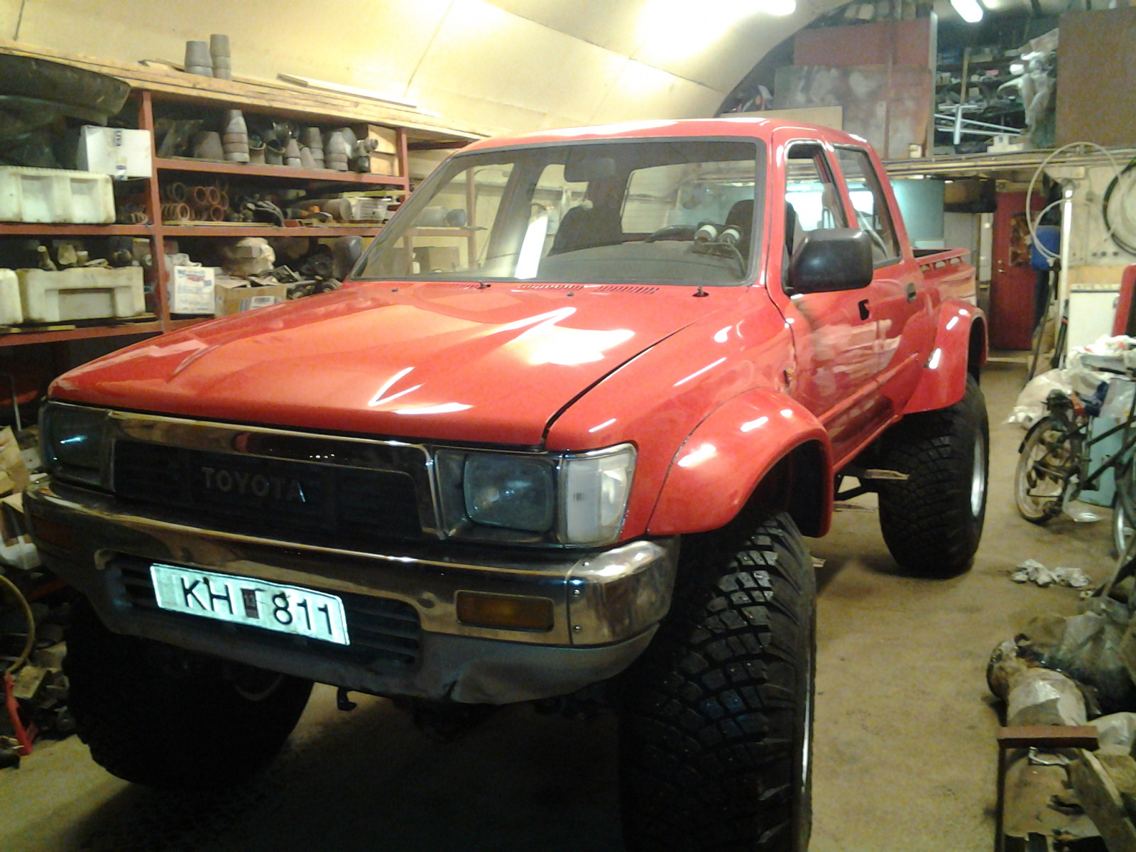 94 árg. dobul cap disel 2,4 með 2L vélinni. það sem búið er að gera: 38"breyting ca. 80L aukatankur. Turbina sett í CT20 hásinga færsla að aftan ca 15 cm. 80cruser gormar og fourlink að aftan boddy hækkun 4" MIKLAR riðbætur auka raf með 8 tökkum VHF stöð+ loftnet með 4x4 og bsv rásum 3&quo...